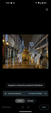 Érdemes a kamera terén kicsit még visszatérni a szoftveres témához, mert vannak funkciók, melyek csak bizonyos feltételek teljesülésekor történnek. Például a csoportképeken a legjobb felvétel funkció, amikor az MI szó szerint lecseréli az ember arcát egy olyanra a fotó elkészülte után, amin nyitva van a szeme vagy csukva van a szája, csak akkor megy, ha több fotó található a készüléken egy adott emberről és képes ezt felismerni és címkézni az eszköz. Ilyenkor is minimum 10 - 15 másodperces művelet a kép szerkesztése, illetve hozzáférést kell biztosítania a felhasználónak a képei szkenneléséhez. A Mágikus Szerkesztő, mellyel mások, objektumok maszkolhatók el a képeken csak akkor tudjuk használni, ha a képeinket előbb feltöltjük a Google felhőszolgáltatásába és a képekről csípéssel történő kiválasztás és matricaként másolás sem működik megbízhatóan és egyértelműen.