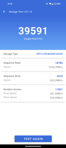 A Samsung 4 nanométeres gyártási technológiájával készül a Tensor G3, mely papíron a 12 GB operatív memóriával és a kilenc magot, köztük egy 3 GHz-es Cortex-X3-at felsorakoztató CPU-val ott kellene, hogy legyen a csúcskategória trónbitorlói között. Ezzel szemben a szintetikus teljesítmény alig előzi be a középkategória komolyabb versenyzőit, a Tensor G3 inkább a Qualcomm Snapdragon 7 Gen 2-es szintjén mozog nyers teljesítményben, mintsem az Apple A17 Pro, a MediaTek Dimensity 9200+, vagy a Qualcomm Snapdragon 8 Gen 3-én, az iPhone 15 Pro Max, a Samsung Galaxy S23 Ultra testhosszal van előtte, de még a jelentősen kedvezőbb árú Xiaomi 13T Pro is be tud vágni a Pixel elé. A CPU egy 3 GHz-es Cortex-X3, négy 2,45 GHz-es Cortex-A715 és négy 2,15 GHz-es Cortex-A510 magból áll össze, a GPU pedig egy Immortalis-G715s MC10-es, de nincs sugárkövetési funkció. Az UFS 3.1-es tárhely elfogadható írási és olvasási sebességekkel dolgozik, a 12 GB LPDDR5x típusú memória pedig úgy érződik, hogy sose fogy ki. A szokásos teljesítménytesztek közül az AnTuTu nem futott le a készüléken, többszöri próbálkozás után is 82%-on kifagyott.
