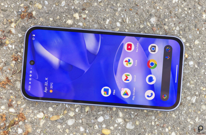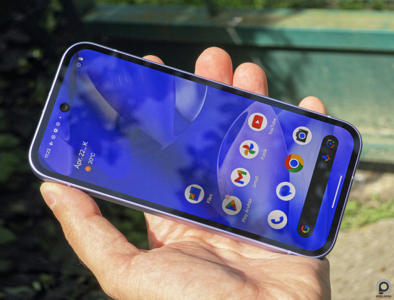 Egy szoftvercégtől persze nem várunk dizájninnovációt, és ami fontosabb, az a Pixel 9a kezes mérete 154,7 x 73,3 x 8,9 milliméteren és 186 grammon, csak az alumíniumkerethez illeszkedő, plasztik hátlap ne lenne olyan veszettül csúszós, hogy a mobil mindig meg akarjon szökni a tenyérből. A csapott oldalakon a bekapcsoló és hangerőszabályzó kézre esik (de zavaró, hogy más készülékekhez képest fel van cserélve), a lapos képernyőt öregecske Gorilla Glass 3 üveglap védi, az illesztések tökéletesek.