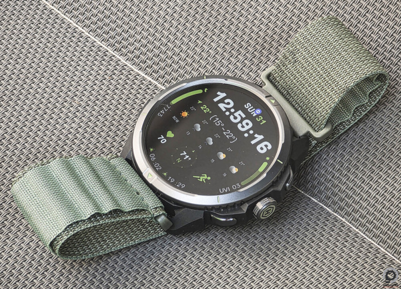 Az összeszerelés remek: noha határozottan férfikellék és azok között is vaskos az alapszíjjal 68 grammos óra, minden ponton remekül egybeillesztették, megvan az 5 ATM védelem az úszáshoz, a textilalapú csereszíjjal pedig 56 grammra csökken a tömeg. A sok lyukkal szaggatott alappánt stabilan illeszkedik és szellőzik, mégis a lent látható textilmegoldás a szívem csücske, mert légiesebb vele egy ilyen óra, remekül szellőzik és szerintem jó ellenpont a Hammer 2 brutalista strapastílusának. Viszont a textilszálak másfél hét használat alatt több ponton elkezdtek felfesleni, ez nem jó hír.