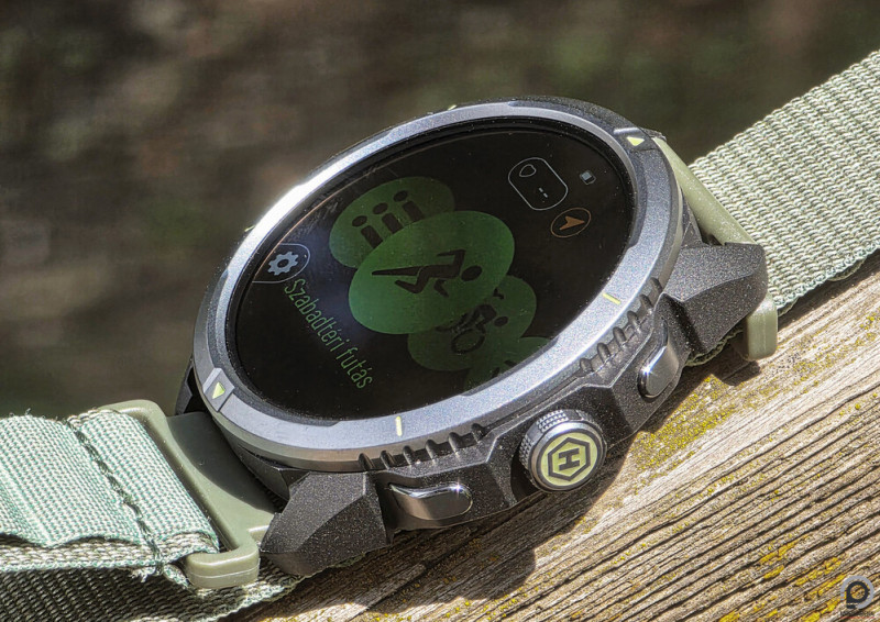 Sokszínű a lengyel székhelyű mPTech portfóliója: a strapabíró Hammer brand alatt található hagyományos nyomógombos és okostelefon, töltőfej és csatlakoztatott óra. Bár szoftverben és ökoszisztémában a nagyokkal ezek nem versenyeznek, árban erős az érv a kis név választása mellett. A Hammer Watch 2 itt látható, terepszínű Military Edition kiadása például csak 45 ezer forintba kerül, mégis belefért az árképzésbe az üvegszállal erősített plasztik váz 1,5” és 466 pixel átmérőjű LTPO AMOLED panellel, Gorilla Glass 3 védőüveggel és titánkerettel.