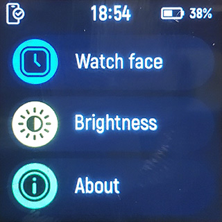 A két óra menürendszere csaknem ugyanaz. A kezdőlapunk egy óra, ötféle számlap közül lehet választani, de nyilván van némi eltérés a szögletes és a kerek design miatt. Ha fentről húzzuk le az ujjunkat, akkor a gyorsbeállítások közé csöppenünk, telefonkereső, fényerő, éjszakai mód (DND), és beállítások menüpont akadnak itt. Ha lentről felfele simítunk, akkor kerülünk be a menübe, ahol a menüpontok egymás alatt sorakoznak, konkrétan kilenc funkció van, ebből egyszerre három látszik.