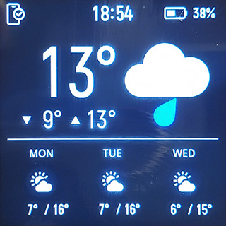 Aztán jön az időjárás, majd az alvásmonitorozás, ez sincs túlgondolva, mély alvás és felületes alvás időmennyiséget mér, az órán ezt is csak a legutolsó szunyára vonatkoztatva lehet látni. Majd ezt követően találjuk az értesítéseket, ahol időrendben látjuk a legutolsó notifikációkat, elég alapszintű kialakítással, mert ezeket csak törölni lehet, reagálni nem, ráadásul csak a feladó és az első pár sor jön át az órára. De legalább egyértelmű, hogy melyik alkalmazás küldte.
