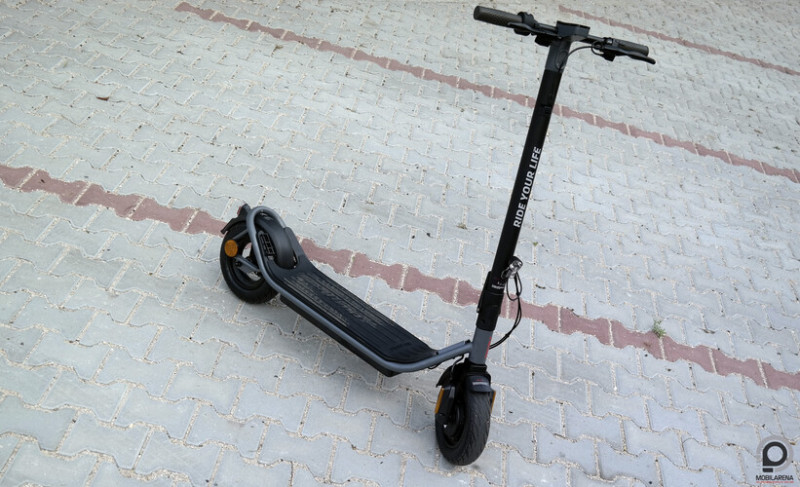 A Himo L2 vaskos alumíniumcsövekből összeépített vázra épül, elöl pedig extra merevítés fokozza azt a stabilitást, ami miatt abszolút nem gondoljuk túlzónak a 150 kilós maximális terhelhetőséget, és míg ennek a testsúlynak a kétharmadától is bizonytalanná tud válni egy vékonyabb és könnyebb kiépítésű roller, addig a Himo minden nyekkenés nélkül cipeli a nagyobb terhet, kategóriájában nagynak számító, 10 hüvelykes kerékátmérővel pedig át is gördül a városi akadályok többségén. A menetkomfort ettől függetlenül kompromisszumos: ha a roller 18 kilós önsúlyához hozzáadjuk saját testsúlyunkat, esetleg még egy hátizsákot is a maga tartalmával együtt, akkor nem nehéz elképzelni, hogy az elöl lévő keskeny lemezvilla, a hátul pedig teljesen merev váz bizony sokszor ijesztően el tudja pattogtatni az egész rollert, és bár a Himo szerint elég a körülbelül 2 bar guminyomás előre-hátra a ballonos abroncsoknak, ami elvileg némi rugalmasságot rakna a történetbe, a gyakorlatban ez sem jelent sokat, és ha valaki biztosra akar menni, és elkerülné a felütéses defektet annak minden hátrányával, akkor ennél a nyomásnál magasabbra fog kalibrálni.