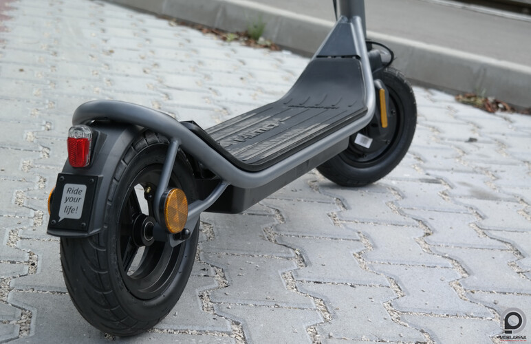 Így aztán azt gondolom, hogy ha már ennyire robusztus, nehéz eszközzel közlekedünk, és ennyire eltávolodunk a kisebb rollerek légiességétől, akkor így már tényleg belefért volna az a súlytöbblet, amit az akár elöl-hátul aktív rugózással belevinnénk a képletbe: valószínűleg nem is a 18 és 21-22 kiló közti különbség, hanem inkább az ár, ami nem engedi meg ezt ebben a kategóriában, és ezért tulajdonképpen nem marasztalható a Himo, csak ne éljünk abban a hitben, hogy a masszív, nagykerekű roller majd kategóriákkal komfortosabb lesz, mint a kistestvérek: azt viszont minden további nélkül elhiszem róla, hogy jobban bírja a gyűrődést azoknál.
