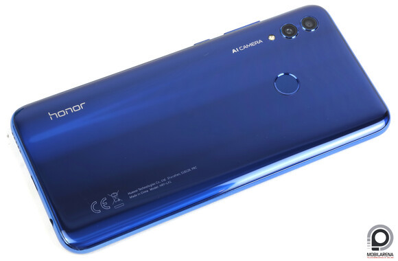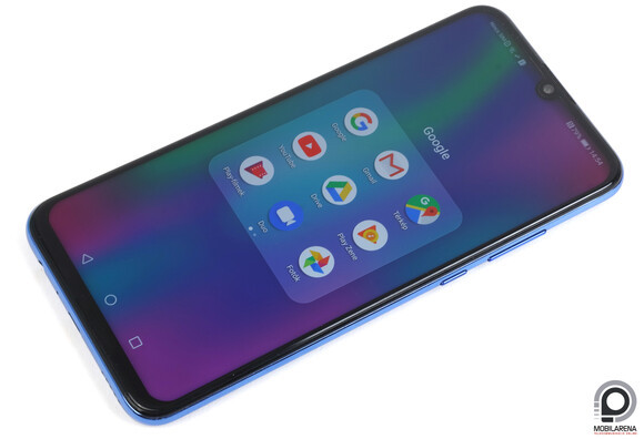 Manapság a 154,8 x 73,6 x 8 milliméteres méretek teljesen átlagosnak számítanak, ehhez képest viszont a 6,21 hüvelykes kijelző még a könnycsepp-notch és a 19,5:9-es képarány mellett is rendkívül nagy, 83,1%-os kijelző/előlap arány nagyon jónak számít. Az anyaghasználatról már nem teljesen mondható el ugyanez: esztétikailag, tapintásra és az oldalsó gombok nyomogatására is nagyon műanyagos az érzet, a hátlap tiszta állapotában gyönyörű, de villámgyorsan ujjlenyomatosodik, és szintén a plasztik szó az első, ami az embernek eszébe jut róla. Összerakva egyébként elég jól van, merevnek érződik, nem recseg-ropog, nincs semmi zavaró jelenség, egyszerűen csak érezni rajta, hogy nem egy prémium modell.