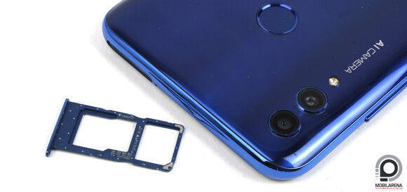 Alul foglal helyet a multimédiás hangszóró, illetve a két csatlakozó, jobbra csoportosították a nyomógombokat, felülre került a hibrid (2 x nanoSIM vagy nanoSIM + microSD) kártyatálca, a bal oldalt viszont teljesen üresen hagyták. Minimális a kameradudor, így billegést aligha tapasztaltunk, viszont a fényes műanyag hátlap felülete egyébként nagyon csúszós, érdemes lehet vele vigyázni. A hátlapi ujjlenyomat-olvasó helye nagyon jól kitapintható, érzékelése gyors és pontos.