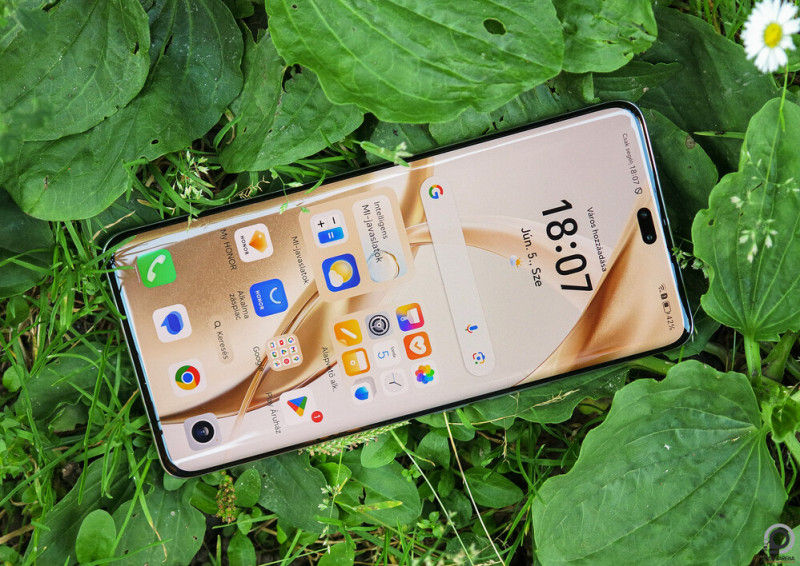 Ítélkezzen mindenki az esztétika felett maga, a karakter mindenesetre megvan, a fogásbiztonságot viszont nem lett volna szabad feláldozni a stílus oltárán. Meggyőzőbb a 199 grammon egész kellemes tömeg, és ennek ellenére 5200 mAh-s telep fért a házba 100 wattos vezetékes és 66 wattos vezetékmentes töltéssel. A bökkenő csak az, hogy ezt a teljesítményt Honor szabványú tartozékok garantálják, és nem került töltő a dobozba, csak leírás, SIM tű, két végén Type-C kábel és előre felragasztott fólia. Elővételben, 2024 június végéig a töltő legalább ajándék, illetve nyár végéig a Honor Pad 8 tablet is.