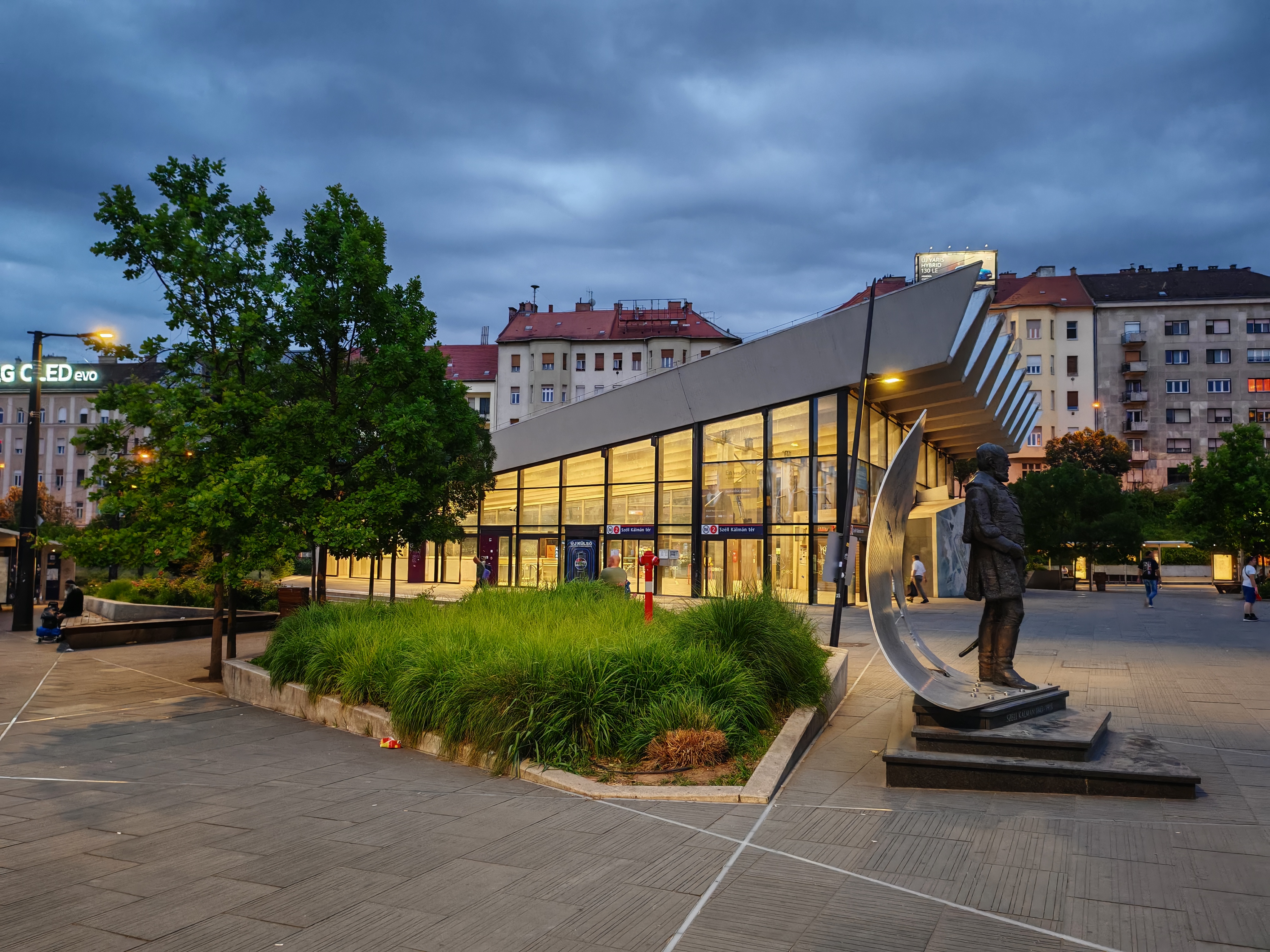Szerencsére kárpótol az optikai zoom, amely 68 mm-en, a 23 mm-es főkamera viszonylatában valójában 3x-os (f/2,4, PDAF, OIS), ám ne vesszünk össze a jelölésen. A lényeg: a Galaxy S24 nagyítási szintjét, ám 50-ről 12,5 megapixelre binnelve annál sokkal több részletet szállítva kapunk remek zoomfotókat, a főkameránál természetesebb színekkel és kontrasztokkal. Megnyerő a helyzet naplemente után is a részletességre és a színekre nézve, viszont hajlamos az automatika éjjeli módban is alulexponálni. Kár, hogy az 5x-ös kézi nagyítás tisztán digitális valamiféle szenzorzoom helyett, 50 megapixelen rögzítve viszont több részlet készül, így nyugodtan vághatunk utólag belőle.