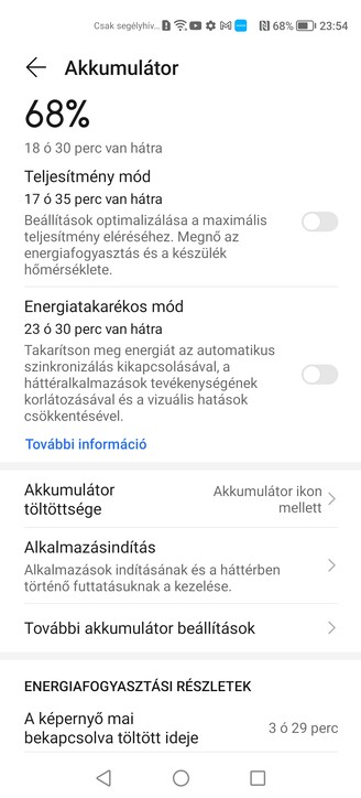 A hátlap alá rakott akkumulátor 4500 mAh-s, ami egy jó átlagnak számít ebben a kategóriában, a dobozban található töltőfej viszont 65 wattos, ami nem gyakori ezen az árszinten, szóval ezért jár a kredit. Ettől még az üzemidő sem lesz kiemelkedő, másfél napos készenléti idővel lehet átlagos használat mellett számolni. WiFi hálózaton maximum 8 órán keresztül tudtam videót nézni folyamatosan, ez sem különösebben kiemelkedő. A töltési idő azonban valóban villámgyors a saját adapterrel, gyakorlatilag elég neki napi 30 perc, hogy ne merüljön le, amit körülbelül a reggeli készülődés ideje alatt el lehet intézni.