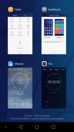Az Android KitKaton alapuló EMUI 3.0-s felülettel olvasóink az Ascend Mate7 tesztje kapcsán már megismerkedhettek, és ugyan azóta kijött a lollipopos EMUI 3.1 a Huawei P8-cal, alapjaiban nem változott a rendszer. Az egyik legfőbb és nem mindenki számára kellemes tulajdonság, hogy alkalmazásmenü nincs, így minden ikon és widget a kezdőoldalak valamelyikére kerül, ami miatt kissé kaotikus a helyzet, ám az ikonok kedv szerint mappákba rendezhetők. Ha ez sem elég, csak le kell húzni egy másik launchert, és máris lesz menü. A kezdőképernyőn lefele ujjmozdulattal gyorskereső panel hívható elő, itt appok, névjegyek és netes tartalmak között is gyorsan lehet kutakodni. A home hosszú lenyomásával csalható elő a Google-asszisztens, az alkalmazásváltón tartva ujjunkat pedig az utolsó két alkalmazás között válthatunk.