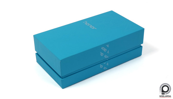A csomagolás majdnem teljesen megegyezik a Honor 7, és kábé az összes Honor készülék dobozának dizájnjával, maga a koncepció és színvilág pedig továbbra is kísértetiesen hasonlít az egyik legismertebb, luxus ékszermárka ikonikussá vált megoldásához, amire hölgyek nyálelválasztása általában automatikusan megindul. Mindenesetre a fényűzéshez kötött képzettársítás aktiválására tett kísérlet ügyes elképzelés. A Speedshoptól érkező, jellegzetes türkiz doboz is lite a 7-hez képest, amennyiben kizárólag a márka csillog ezüstösen, felette pedig szintén ez olvasható, ha úgy esik rá a fény, csak nagyobb méretben. Más indikátor nem utal arra, hogy a doboztetőt leemelve melyik modellt rejti a pakk. A tálca alatt üzembehelyezési gyorstalpalót és SIM-tűt találunk, a doboz mélyén pedig egy darab, 1 amperes hálózati töltőfej és microUSB kábel zötyög. A tartozékok továbbra is jelzetten Huawei gyártmányúak, nem mintha különösebb jelentősége lenne, de ezt a kezdetek óta nem sikerült szinkronba hozni a készüléken található felirattal.