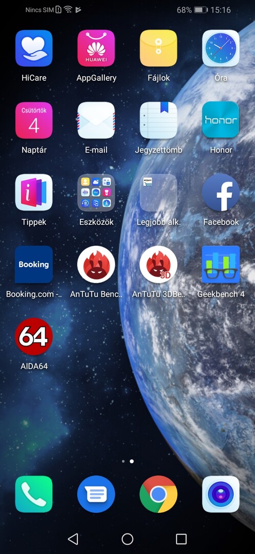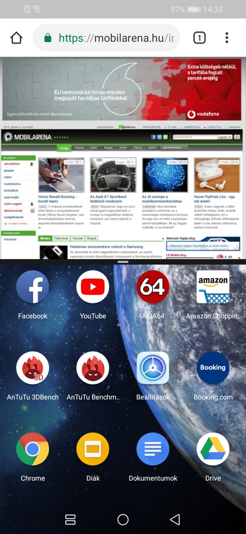 Az alkalmazáskínálat tovább racionalizálódott, például kihagyták a jelen esetben felesleges játék módot és a szokásos demókat, illetve a tükröt, ami jópofa volt ugyan, de pont azt tudja, mint az előlapi kamera. A Honor ikon csak a Honor webes felületére navigál, a HiCare terméktámogatáshoz pedig regisztráció szükséges. Van viszont telefonkezelő (erőforrásmenedzsment), tök értelmes használati útmutató, felrakták előre a Facebookot, a Booking.com-ot és az Amazont, ezeken kívül a szokásos alapkészségek (számológép, hangrögzítő, időjárás etc.) és a Google szoftvercsomagja foglalnak helyet, a billentyűzetet pedig a SwiftKey biztosítja.