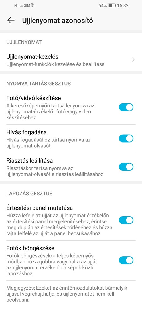 Ilyenek például az azonosításkor is kiválóan működő ujjlenyomat-olvasóhoz kötődő extra funkciók. Leránthatjuk vele az értesítő sávot és a testreszabható gyorskapcsoló panelt, fogadhatunk hívást, némíthatjuk a riasztásokat, lapozhatunk a galériában és exponálásra is alkalmas, ami szelfinél külön jól jön. Biometrikus azonosításra elérhető egyébként a 2D arcazonosítás is, ami szintén villámgyors és roppant kényelmes. A készüléket megemelve már dolgozik is és egészen abszurd szögekből is felismeri a tulajdonost, másik kijelzőn mutatott fényképről viszont nem.