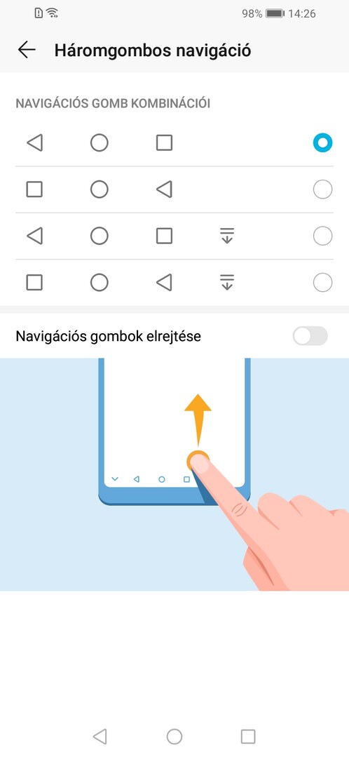 A rendszernavigáció lehet gesztusalapú, de elérhetőek a hagyományos navigációs gombok is, amelyek sorrendje tetszőlegesen változtatható, illetve az értesítési sáv vezérlését is kérhetjük negyedik gombként. A mozgásvezérlés kimerül a három ujjas képernyőfelvételben, az átfordítással való némításban, illetve itt kell engedélyezni, hogy a kijelző feléledjen, ha megemeljük az eszközt. Ez nem árt, ha az arcazonosítást is használjuk. Érdemes beállítani, hogy azonnal a főképernyőre nyisson, így megspórolhatjuk az azonosítást követő kijelzőpiszkálást. Nem kell felhúzni a zárképernyőt.