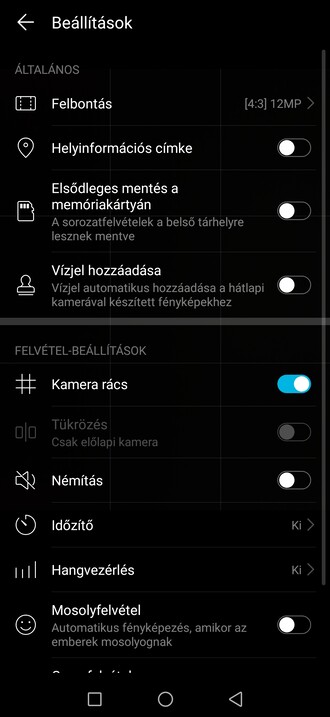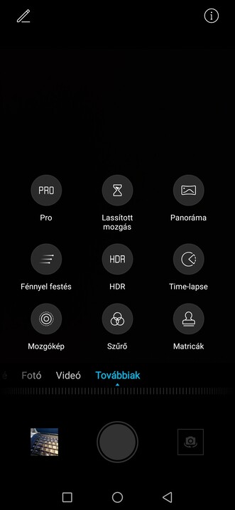 A szoftverben megint eldugták a HDR-t, pedig nem ártana, ha kéznél lenne, cserébe az élőképen is elérhető AI mód aktívan használja. Mellette a segédfény kapcsolgatható, a bal felső sarokban pedig a HiVision érhető el. Az csúszkán a fontosabb kameramódok között válthatunk, ilyen a portré, az esti mód, a rekeszérték, a professzionális pedig a Továbbiak között található. Itt lehet piszkálni az érzékenységet (50 - 3200), a záridőt (1/4000 - 30), expozíciókorrekcióra +/- 4 tartományban van lehetőség, a színhőmérséklet pedig 2800 és 7000 K között lehet.