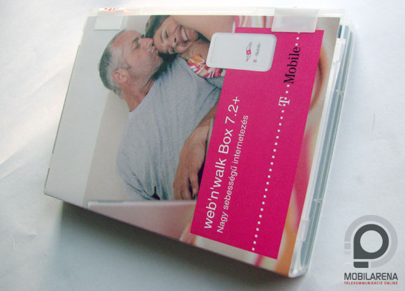 Kezdjük a három eszköz közül a kakukktojással. Ez pedig a T-Mobile web’n’walk kártyája. Ez ugyanis az egyetlen olyan eszköz a három közül, ami bizony hálózatfüggő (kipróbáltam), csak a magenta színben pompázó kártyákkal képes üzemelni. A doboz külsőre tetszetős, leginkább a piros szolgáltató hasonló kütyüjére hajaz, de ez nem is csoda, hiszen a gyártó megegyezik: a Huawei. Az eszköz mellé semmilyen szoftver nem jár, mindössze egy magyar nyelvű telepítési útmutató, amely kicsit bő lére eresztve tartalmazza a bonyolult üzembe helyezési lépéseket: dugd be az USB portba.
