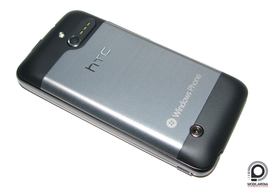 Hátulról sem mondható épp csúnyának, a matt műanyag és a csiszolt fém akkufedél jól néz ki együtt. Az akkufedélen HTC és Windows Phone feliratok, az alul lévő, csavarra emlékeztető valaminek elvileg semmi funkciója sincs. Felül találjuk a kamerát, melyhez egy apró, ám erős fényű LED is tartozik. Az optikával közös keretbe foglalták a kihangosító hangszórót, ami ráadásul zöldes színű rácsot kapott. Muszáj kiemelnem a minőségét, ugyanis mobilos léptékkel nézve kifejezetten jól szól. Meglepő, hogy a három apró lyukon keresztül milyen hangosan és tisztán törnek elő a hangok, még maximális hangerőn sem torzít. A csoda viszont addig tart, amíg le nem tesszük egy asztalra, mivel ilyenkor erősen veszít az erejéből (megoldás, hogy kijelzővel lefelé kell letenni).