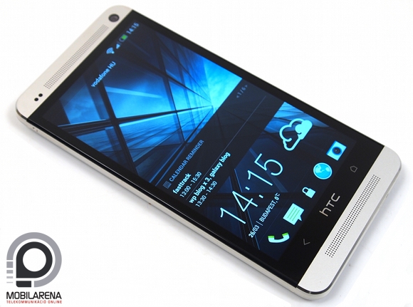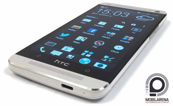 A felső hangfal mellett bal oldalt található a közelségérzékelő és a fényszenzor, jobbra a másodlagos kamera kapott helyet. Maga a kijelző 4,7 hüvelykes képátlóval és Full HD, azaz 1080 x 1920 pixeles felbontással rendelkezik, ami 468 ppi pixelsűrűséget eredményez. Ez jelenleg a piac legmagasabb értéke, másfélszerese például az Apple által csak retinaként aposztrofált 326 ppi-nél, de értelemszerűen az öt hüvelykes Full HD telefonokat is előzi. Persze ezen a szinten már igazából mindegy az eltérés, már a 300 ppi körüli sűrűségű paneleken is nehéz kiszúrni a képpontokat, ennek megfelelően a One tűéles képet ad. Sokkal fontosabb tényező a képátló, a HTC a riválisokkal ellentétben nem növelt 5 hüvelykre, ez a kialakítás pedig sokat javít az egykezes használat kényelmi faktorán.