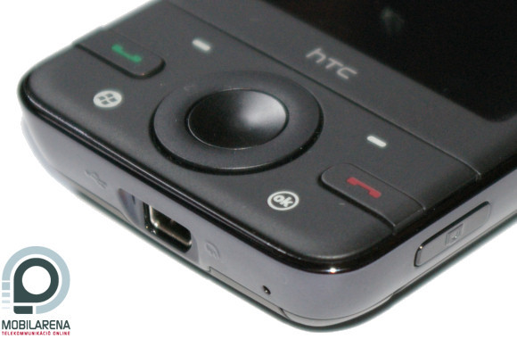 We can find the speaker on the top, the status LEDs are hidden behind it. The high-quality 2.8” QVGA display is below this, while the controls are in the bottom part. These also have a cool design, the call handling buttons are surrounded by the software keys and the Windows and OK buttons. The circle-shaped d-pad, which also functions as a scrolling wheel, is in the center.