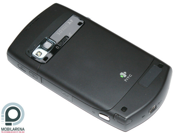 We can observe on the back that the guys at HTC tried to force something stylish on it, but the general impression is something like a Russian lumberjack dressed in ballerina clothes – so it’s not really perfect. The most conspicuous part is the camera with everything that goes with it: large lens, flash, a label with the camera’s specs and then comes the slider for taking off the back (this has a large padlock icon) and the GPS label which hides the connector for the external antenna. There is some rubber in the bottom part too, with a functionless plastic grating below it: the manual says nothing about it. Design flaw?