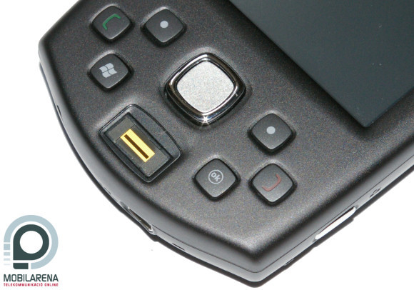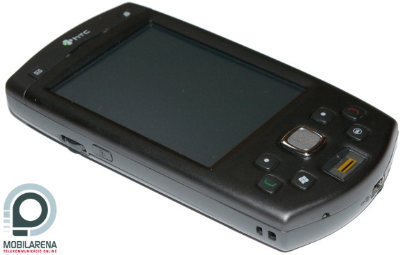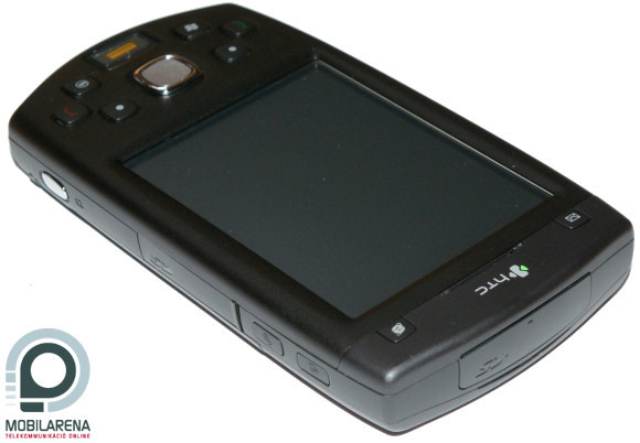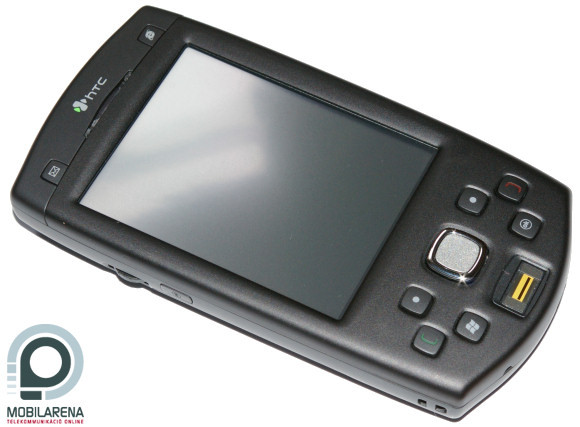On top of its front, under the HTC logo, we can find the speaker, surrounded by two shortcut keys. In the middle we can see the touchscreen display that has a diagonal of 3.5” and a resolution of 240 x 320 pixels. Basically everything’s all right with quality and we can cope with the size too, which counts as ultra-large nowadays. My personal opinion is, however, that the screen should have VGA resolution, as for example E-TEN puts a 480 x 640 display in almost every device of theirs. On the bottom there are six buttons in an interesting layout, with a 5-way d-pad in the center and a fingerprint-reader below it.