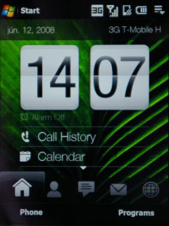 The PDA's operating system is Windows Mobile 6.1 Professional, but one couldn't tell this at first sight, which is due to the TouchFLO 3D interface, that is presented in detail on the next page. The CPU is a 528 MHz Qualcomm MSM7201A, RAM has a size of 192 MB, while ROM is 256 MB large. We can use 55 MB of the first one for running programs, and we can turn off TouchFLO 3D in order to get some additional space, but we won't really need that. We have about 50 MB of the ROM for storing data, but this is extended with 4 GB of built-in flash memory, which can be read at 5.92 MB/sec and written to at 2.56 MB/sec, according to my measurements. The memory cannot be expanded unfortunately, but it might not even be needed, taking into consideration the size of the internal memory. The boot process is rather slow, TF3D needs about 20-30 seconds to start up.