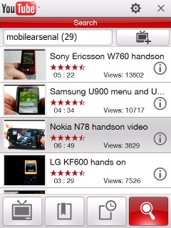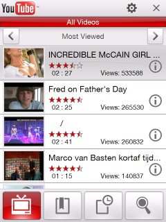 There is a dedicated application for watching YouTube videos. It can only run in fullscreen mode, but it's cool, usable and fast. Videos are played back continuously, in landscape view, on fullscreen.