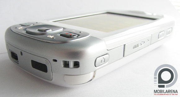 Járjuk körbe a mindössze 150 grammos készüléket! Elöl csücsül a kijelző, felette egy vga kamera a videohívásokhoz. Alattuk egy 4 irányú billentyű, közepén egy OK funkciójú gombbal, körülötte pedig 6 egyéb gomb, mégpedig a következők: felül két gyorsbillentyű, alul windóz-gomb, meg egy ok billentyű. Ezen kívül a zöld hívásindító, meg a piros letevő ezüst színű gombja furakodik be középre. Bal oldalon egy jog-dial és egy ok gomb található. A jog-dial ismerős lehet például a SonyEricsson P sorozatából, bár ezt csak tekerni, meg benyomni lehet, előre-hátra nem mozog. Jobb oldalt a főkapcsoló, a hanghívás indító gombja és a fényképezőgép exponáló billentyűje van, na meg egy mini-SD feliratot tartalmazó ajtó. Hurrá, lehet menet közben cserélni! Hátul egy 2,1 megapixeles optika segédfény nélkül, meg a szent antennakráter, szépen gumiajtóval takarva. Felül semmi, alul infra, meg egy EMU (enchanced mini USB) csatlakozó figyel. Hűha, itt aztán van mit nyomni! Hagyományos billentyűzet nincs, nem is kell.