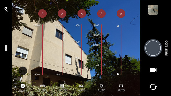 Ha átváltunk profi módra, akkor kézzel választhatunk jelenetmódot (ide egyéni módokat is készíthetünk), csúszkákon állíthatunk fehéregyensúlyt (2300 K - 7500 K), expozíciót (-3 és +3 között, egytizedes lépésekkel), ISO-t (100 - 800) záridőt (1/8000 és 32 másodperc között) és fókuszt. Állvánnyal egész ütős hosszú záridős fotókat lehet este összehozni. Mindezt pedig menthetjük RAW formátumba is, előbb jöjjön ebből egy csokor, ezeken végeztünk némi utómunkát, de a zajhoz nem nyúltunk, csak a kontrasztot, a telítettséget és a színhőmérsékletet állítottuk kissé: