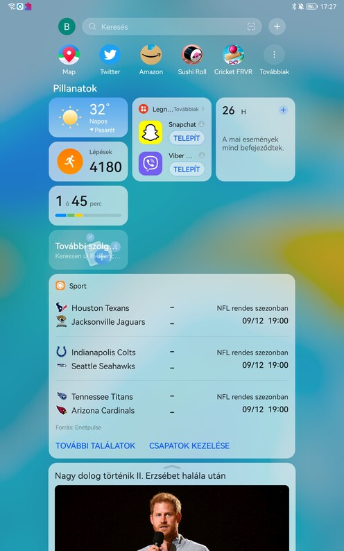 No, de mi a helyzet a HarmonyOS-sel? A hibátlanul magyarított, 2.0-s verziójú rendszeren úgy kell keresni a különbségeket az androidos EMUI-hoz képest, aztán persze rátalálni, ha egy-egy vizuális jegy annyiban nem is különbözik. Az asztalon mindjárt akad újdonság, és most nem a balról előhúzható, kártyákkal és információkkal teletűzdelhető Assistant Today főoldalra gondolok, mert az eddig is hasznos gyűjtemény volt. A tálcaikonok alul kettéosztottak: balra azt pakolunk oda, amit akarunk, jobbra meg a legutóbb használtak indítója jelenik meg. Bizonyos ikonokra hosszan nyomva eddig is felugrottak opciók, felpöccintve mostantól pedig snippetek, amolyan mini-widgetek is előmásznak alkalmazáson belüli funkciókkal és információkkal, ezeket pedig ki lehet tűzni a főoldalra.