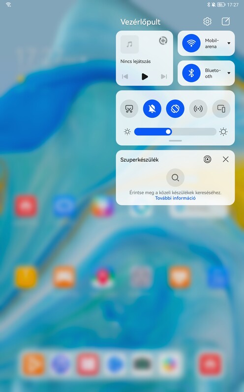 A snipetek nem csak hasznosak, mobilon ezeket ugyanúgy egybe lehet gyűjteni, mint a futó alkalmazásokat, erre viszont tableten pont nincs gesztusvezérlési opció. HarmonyOS-en a mappák méretével is játszani lehet. Bal felülről lepöccintve ugrik elő az értesítősáv, jobbról meg a vezérlőközpont kapcsolókkal és kezelőfelületekkel, a legutóbbi multimédiás appot beleértve. Az igazi újdonság a nem túl szerencsés nevű szuperkészülék néven fut, és ide harmonys és egyéb Huawei eszközöket húzva fejlett multitaskingot és adatmegosztást folytathatunk. Sikerült például a FreeBuds 4-et szupereszközként társítani, és ha minden igaz, ha van egy másik harmonys cuccunk, könnyedén áthúzhajuk az egyikről a másikra, és annak a hangját játssza le. Vannak ugyebár kompatibilis Huawei hangszórók és jó pár partner révén például okosított sütők, mikrók és hűtők, de például szobáról szobára járva is könnyedén a célhelyszínre irányíthatjuk a hang és képlejátszást.