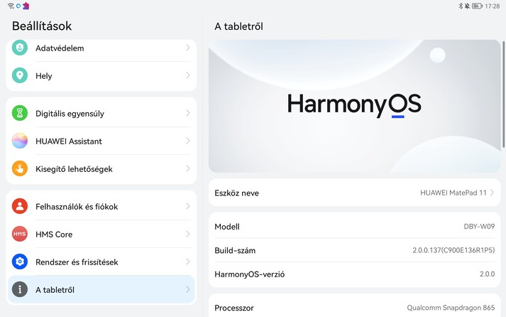Huawei tablet Qualcomm chippel? Miért ne? A MatePad Pro a remek Kirin 9000-et kapta meg, de a jóval kedvezőbb árú 11-nek sem kell szégyenkeznie a 7 nm-es Snapdragon 865-öt bevetve, melynek egy 2,84 Ghz-es, három 2,42 GHz-es és négy 1,8 GHz-es Kryo 585 magja makulátlan munkát végez a legcombosabb multitasking mellett, és nincs játék, amitől a 120 Hz-es panel meghatódna, bár kevés támogatja ezt a képfrissítést. Ezek előnyös alapok, és a 6 GB RAM is bőséges, amihez 128 GB-os, ultragyors UFS tároló jár, így a microSD bővítés tényleg opcionális.