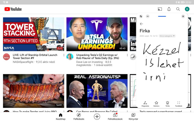 Szintén megvolt androidon, és a HarmonyOS-nek is jól áll az osztott képernyős és a lebegőablakos multitasking, és most már akár négy appot kezelhetünk egy képernyőről. Mivel pedig a MatePad kapott digitalizálót, kitűnően összedolgozik a jó fogású és érzékenységű M Pencil stylussal. Kikapcsolt képernyőre bökve gyorsan előhívhatjuk a firka funkciót, a komolyabb rajzolóprogramot Nebo néven találjuk meg. A MyScript Calculator 2-vel ceruzához hasonlóan firkálhatunk képleteket, amit az app digitalizál, a FilmoraGo HD pedig egy pofás, bár nem ingyenes videószerkesztő. A Harmony éppúgy ad alkalmazástippeket, mint az EMUI tette Androidon, bár pár keresetlen játékdemó is felkerült. Megvan mindenesetre a legtöbb Google szolgáltatás Huawei-féle alternatívája, a felhőt és az egyre jobb Petal Térképet beleértve, amely műholdas és terepnézettel gyarapodott, valamint bekerültek a forgalmi és tömegközlekedési adatok.
