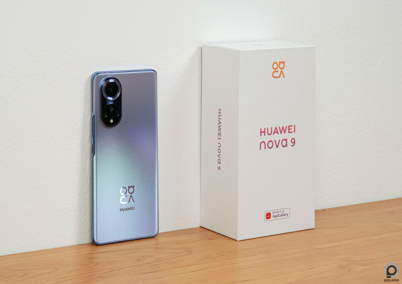 Ilyen fajsúlyos gondolatok között szinte félve kopogtatott be a Nova 9 az ajtón, pedig nincs miért a külseje miatt szégyenkeznie: csillámszerű, ezüstös-kékes-rózsaszínes fényvisszaverésével üveg hátlapja roppant megnyerő, kapszulaszerű kameraszigete egyedi, elöl pedig teljesen feketébe bújt a fénymérő, a közelségérzékelő, a beszédhangszóró és a minimális kávával körbevett, 6,57”-es és 1080 x 2340 pixeles OLED panel. Megvan a tűéles karakterrajzolat, a 10 bites színmélység, a 120 Hz-es képfrissítés, a kitűnő napfény alatti fényerő, a sokrétű kalibráció, a működő gesztusvezérlés, a fürge ujjlenyomat-olvasó és a mindig aktív kijelző – ergo a csúcskategóriás alapok.