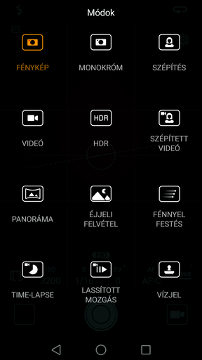 A beállítások az egyik hosszanti oldal felől húzhatók elő (itt három Leica „film mód” is elérhető normál, élénk és lagy tónusokkal), a többi mód pedig a másik oldalról, és itt aztán akad opció látástól vakulásig. Lehet panorámaképet, esti fotót, HDR-t, hangjegyzetes képet, szépített fotót, szépített videót, dokumentumfotót, lassított felvételt, time lapse klipet és vízjelezett képet lőni. Fénnyel festésre is van opció, persze ezt is kiválthatja a kézi mód. Amiről eddig hallgattunk, és a dupla kamerarendszer miatt szükségszerűen kimaradt, az az optikai képstabilizátor, pedig pont jól jött volna hosszabb záridők és videofelvételek esetében, izgalmas kérdés, hogy a hiányát mennyire tudják pótolni a több fényt befogó szenzorok. Megfigyeléseim szerint egyébként (amihez egy névjegykártyát vetettem be, mellyel egyszer az egyik, másszor a másik lencsét takartam le), a monokróm mód csak a monokróm kamerát használja, ez talán nem meglepő. Amikor viszont nappal az automata, a profi és a HDR-módban lőttem egy-egy képet a monokróm szenzor letakarásával és anélkül, a végeredmények gyakorlatilag megegyeztek, így jó fényviszonyok esetében vagy csak az RGB modul dolgozik, vagy nincs különbség az egy- és kétszenzoros eredmények között. Este viszont, ha automata módban letakartam a monokróm kamerát, jóval zajosabb eredmények születtek, úgyhogy, amikor szükséges (a naplementét és más speciális fényviszonyokat beleértve), úgy tűnik, valóban két szenzorral dolgozik a rendszer. Profi módban, dng rögzítés mellett mindenesetre tippem szerint csak az RGB használatos.
