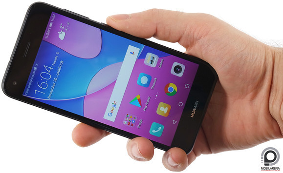 A mini utótag egyébként apró készüléket sejtet, de az 5”-es képátló nem annyival kisebb az 5,2”-esnél, hogy indokolja, a 143,5 x 71 x 8,05 milliméteres fémház térfogata még nagyobb is az eredeti P9-énél. 145 grammjával és egykezes használatra alkalmas képernyőfelületével mindenesetre üde színfolt az óriásmobilok között, és a Huawei-től megszokott, remek összeszerelés is adott. Elöl a 720 x 1280 pixeles IPS megjelenítő védőüvege, míg oldalt és hátul a fémlap, illetve az alsó-felső műanyag antennasáv kapott komfortos lekerekítést, és bár a mutatós kivitel csúszós lett, mint a térkő ónos esőben, jobbra a hangerőszabályzó és a bekapcsoló, hátul pedig az ujjlenyomat-olvasó van tökéletes helyen.