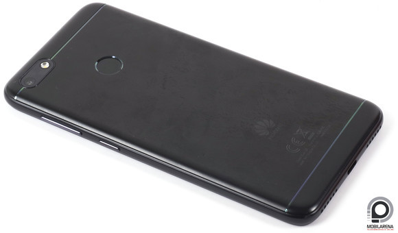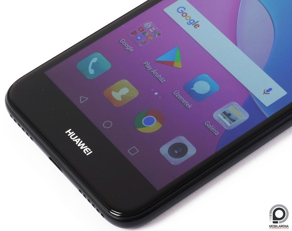 Ha már maradt alul szabad hely, nyugodtan odakerülhetett volna a vissza, a kezdőoldal és az alkalmazásváltó gomb. Elrejteni a virtuális variációjukat ugyanis nem lehet, csak a sorrendjüket megcserélni. Felülre 5 megapixeles kamera, fénymérő, közelségérzékelő és beszélgetési hangszóró jutott, míg alul Huawei felirat csillan meg a fekete festés előtt. Márkajel hátra is került, némi minősítő felirat kíséretében, és az ember már elégedetten csettintene a felső, hosszúkás kamerarészre pillantva: dupla lencse ennyiért?
