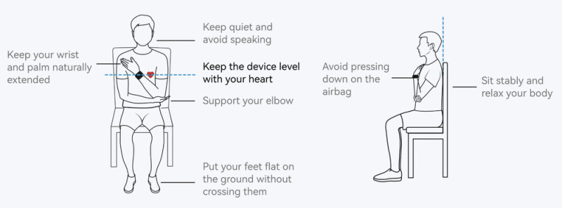 A puding próbája persze az evés, és mivel sok szempontból megegyezik a Watch D2 és a Watch GT 5 Pro tudása, ebben az anyagban a vérnyomásmérésen van a fókusz. Mindezt nem csak javasolt, hanem tapasztalatom szerint kötelező a Huawei által előírt pozícióban végezni az utolsó részletig, más testhelyzetben, lazábban, elfekve vagy rázkódó járműben eltérő eredmények születhetnek.