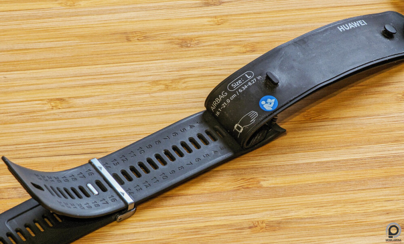 Ezt kerüli ki a Huawei Watch D2: a hivatalosan 48 x 38 x 13,3 milliméteres kellék egyéni szabványú pántja tartalmaz egy vékony légzsákot, amit az óra fúj fel hitelesített, légnyomásalapú vérnyomásméréshez, emiatt pedig nem kell időközönként újrakalibrálni.