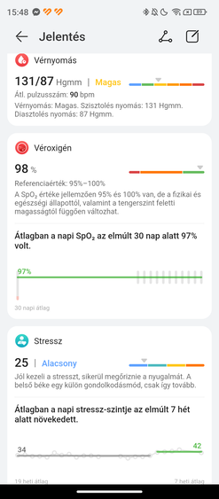 Hasznos funkció az egészségügyi áttekintés, amely az EKG-t, az artériás érfalmerevséget, a vérnyomást, a pulzust, a véroxigént, a stressz-szintet és a bőrhőmérsékletet is megméri másfél perc alatt, riportot készítve az általános jóllétről. Hozzá kell tenni persze, hogy a Watch D2 nem orvosi eszköz, nem helyettesít szakvizsgálatot, szív- és érrendszeri problémák esetében tehát továbbra is érdemes orvossal konzultálni. Érdekes adalék, hogy az óra elszámolható lesz egészségpénztári számlára (Prémium Egészségpénztár, MBH Gondoskodás Egészségpénztár, Vasutas Egészség- és Önsegélyező Pénztár, Generali Egészség- és Önsegélyező Pénztár), de a vásárlás helyén mindenképp érdemes ennek részleteiről érdeklődni.
