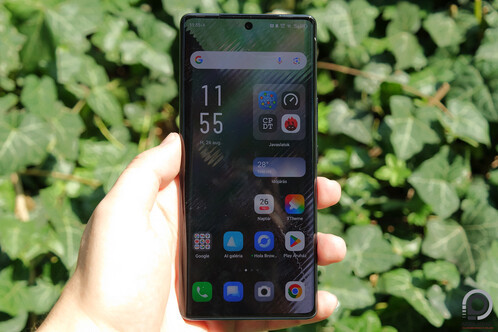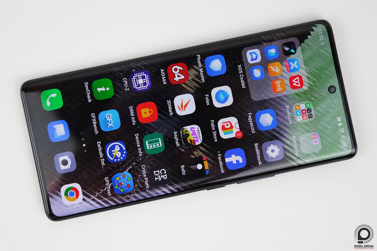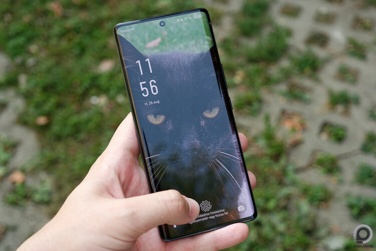 A panel fényereje egyébként nem kiemelkedő, az árszinten is csak átlagos, viszont a minimális fehér fényerő kifejezetten magas, ami este már zavaró lehet. Kültéri használat során épp olvasható marad még a panel, de közvetlen napfény alatt már nem látszik a rajta megjelenő tartalom. A kijelzőbe építve találjuk az ujjlenyomat-leolvasót, ez optikai szenzor gyors működéssel. Van mellette 2D-s arcfeloldás használatára is lehetőség, amihez a kijelzőbe lyukasztott 32 megapixeles előlapi kamerát használja a rendszer. A panel színei kicsit kékes árnyalatúak, az ívelt széleken fantomérintésekkel csak ritkán találkoztunk. Van lehetőség mindig éber kijelző aktiválására, ezt a Mindig megjelenít menüpont alatt kell keresni, az Élő háttérkép menüben pedig kiválaszthatunk egy fotót és stílust, amiből a rendszer készít egy kis animációt a telefon feloldásához. Mindezt a Személyre szabott opció alatt találni a beállításokban, a furcsa fordításokról kicsit később.