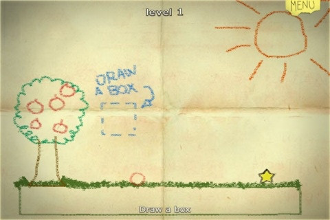 Vágjunk is bele. Első alkalmazásunk a PC-s körökből is ismerős Crayon Physics Deluxe, a program, amire a rajongók hosszú-hosszú ideig vártak. Történt ugyanis, hogy 2007 június elsején egy programozó, bizonyos Petri Purho feltöltött az internetre egy általa készített PC-s játékot, amit úgy mellesleg öt nap alatt fejlesztett le Creative Commons-ös, ingyenes erőforrásokat használva. Ez a program volt a Crayon Phyrics, amit ide kattintva le is lehet tölteni. Egy pár perc alatt végigvihető alkalmazásról van szó, mely egy olyan elképzelésre épül, amit gyakorlatilag bárki kitalálhatott volna, de mégsem jutott senkinek sem az eszébe. A lényeg, hogy van egy kétdimenziós világunk, benne egy labda és egy csillag. A cél, hogy a labda eljusson a csillaghoz, de mivel közvetlenül nem irányíthatjuk azt, egyetlen lehetőségünk, hogy különféle geometriai formákat rajzolgatunk és azok segítségével lökdössük el golyóbisunkat a céljáig.