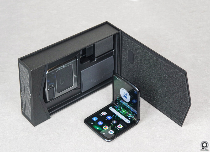 A Motorola Razr 2022 dobozában jóval több minden (töltő, tok) található, mint ami a Galaxy Z Flip4 mellé jár (kábel). [+]