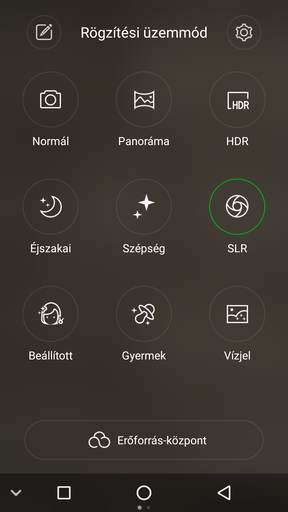 A szoftver például egyáltalán nem rossz, bár sok mindent nem lehet vele csinálni. Nyers képfájlok létrehozására nem alkalmas, az élőképen viszont a segédfény, az időzítő és a kameraváltó mellett választhatjuk a hamis portré módot, és a monokróm felvételt, ami legalább natív, a másodlagos szenzor valóban szürkeárnyalatos. Jobbra simítva az élőképet néhány mód kerül elő, mint a panoráma, a HDR, az éjszakai, a beállított fotó, amiről nem tudjuk, hogy mit tesz hozzá az élményhez, valamint van egy erőforrásközpont is, ahonnan további trükköket tölthetünk le, például egy csomó fajta vízjelet. A beállításokban egy darab opció nincs, ami a képminőséget érintené, viszont továbbra is belépő árszinten vagyunk, úgyhogy ez nem akkora meglepetés.