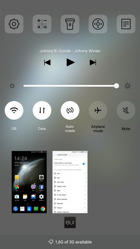 Az EUI egyébként kifejezetten elmés, egyben egyedi megoldásokat integrál, amiről a nemzetközi ROM használatával sem kell lemondanunk. Ilyen a gyorskapcsoló panel és az alkalmazásváltó összevonása az alkalmazásváltó kezelőgomb alá. Az értesítések továbbra is a legördülő függönyön jelennek meg, de a WiFi kapcsolgatásához nem kell az 5,5 hüvelyk tetejéig nyújtóznunk. A panel felül tetszőleges sorrendbe rendezett gyorsindítókat és funkciókat kínál, alatta a zenelejátszó alapvető kezelőgombjai, valamint a fényerőcsúszka érhető el. Az alkalmazásváltó felett a gyorskapcsolók szintén variálható összetételben sorakoznak. A Home érintő hosszú megnyomásával a telefonon belül is működő keresőfunkció ugrik elő, sajnos a legtöbbünk számára értelmezhetetlen nyelven. További remek fícsör viszont a kijelző lezárása a vissza érintőgomb hosszú megnyomásával, ahogy a kijelző nem ujjlenyomattal történő feloldásakor eleve egykezes használathoz idomított formában előugró felület is roppant kényelmes és okos megoldás.