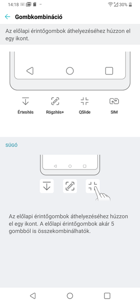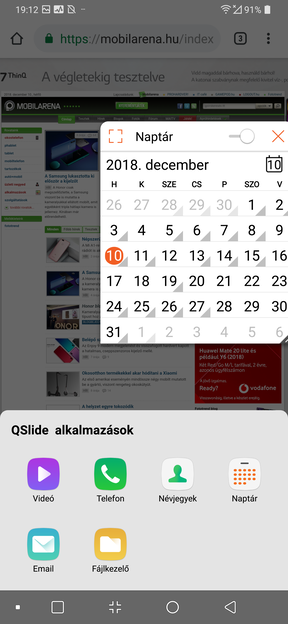 Természetesen a virtuális navigációs gombok sorrendje is variálható, plusz rápakolhatunk még néhány dolgot a navigációs sávra, ami nem árt, ha kéznél van. Az értesítő panel kezelőjét, a képernyőírást, előszedhetjük a QSlide appokat, ami kis, átméretezhető ablakban jeleníti meg, amit tud, illetve a SIM váltó is ide rendezhető. Nyilván kiszínezni és elrejteni is lehet a sávot. Van egykezes Mini nézet, témaáruház, állítható a megjelenítés mérete és a betűtípus is.