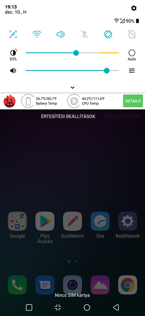 Az LG nem aprózta el a teljesítményt, a tavaly előtti csúcsszettet választották, abból is a komolyabb verziót, ami továbbra is egy érvényes döntés, a működés és a performansz még manapság sem hagy kívánnivalót maga után, a Snapdragon 821 viszont erősen melegedett. Ez most is így van, bármilyen terhelésnek tesszük ki a 2+2, maximum 2,3 és jelen esetben 2,1 GHz-es Kryo magot, a készülék érezhetően melegedik. A felhasználói élmény ezzel együtt, vagyis inkább ezt leszámítva teljesen rendben van. Pontszámok alapján nyilván vannak már meggyőzőbb megoldások, de a mindennapi használat 4 GB RAM-mal és az Adreno 530-as IGP mellett tökéletesen kielégítő.
