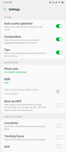 A szoftverben természetesen van mindenfelé konfigurálható time-lapse mód, nem maradt ki a slo-mo és a YouTube Live lehetősége sem, ez utóbbi egyébként csak egy link a YouTube alkalmazás megfelelő pontjára. Van lehetőségünk manuális videózásra, ahol variálhatunk a fehéregyensúllyal, az expozícióval, a fókusztávolsággal, az ISO-val, a bitrátával és a hanggal is (Hi-Fi mód, limiter, mélyhang-vágás, erősítés). A hangmódok között egyébként a normál videózásnál is van hagyományos sztereó hang, ASMR és a háttérzajt erősebben szűrő Voice Bokeh is.