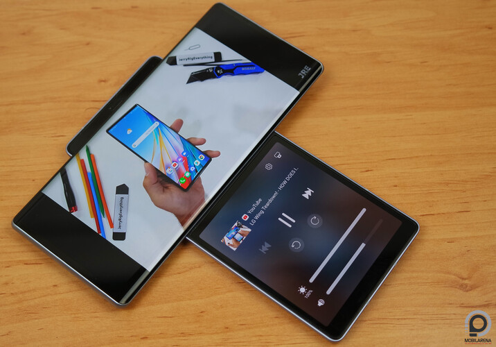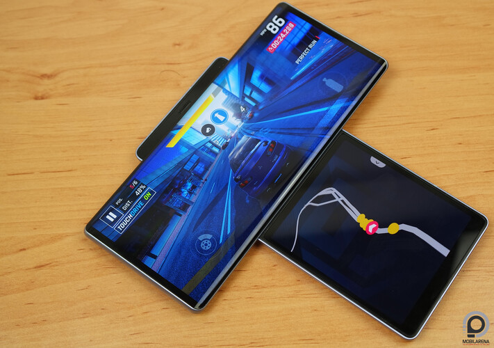 Még mindig nincs pontos magyar árunk a termékkel kapcsolatban, de a nemzetközi árakból kiindulva biztosra vehetjük, hogy bőven 300 ezer forint fölött fog nyitni itthon, miközben a hardvere, a kamerarendszere, az akkumulátora és a fő kijelzője alapján nagyjából a 200 ezres mobilok közé lehet sorolni, a maradék pedig a különleges kialakítás és a hozzá kapcsolódó egyedi szolgáltatások felára. Mi az elmúlt két hétben folyamatosan használtuk a mobilokat, nálam a prototípus és a végleges járt teszten, Bog pedig a protóval ismerkedett, és nagyjából mindketten ugyanarra a konklúzióra jutottunk: nehéz lenne valódi érvet felsorakoztatni a kialakítás mellett, kevés olyan eset volt, amikor a másfél kijelzős felület tényleg hatékonyabbá tette a használatot. Jól sikerült az összeszerelés, a forgatómechanika is feszes, kellemes, továbbá az LG készülékeinek csomó egyéb előnyét is élvezhetjük, viszont a gyártó korábbi csúcsmobiljaihoz képest az audio-oldal jelentős visszalépés a 3,5 milliméteres jack, a Quad DAC és a sztereó hangszóró hiánya miatt. Számomra a készülék komfortzónán kívüli mértékben nagy és csúszós, a használat teljes ideje alatt benne volt a levegőben, hogy egyszer leesik - szerencsére ez nem történt meg, de biztos vagyok abban, hogy ha csak fél centivel keskenyebbre és egy centivel alacsonyabbra hozzák össze a konstrukciót, már kisebb lenne a rizikó.